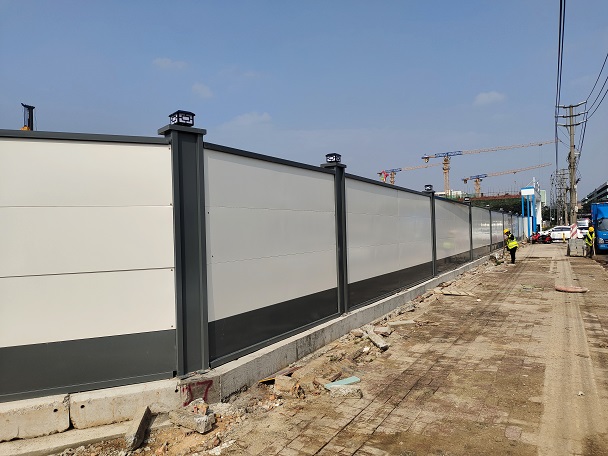 此項(xiàng)目旭東公司提供合作的產(chǎn)品是鋼結(jié)構(gòu)圍擋A1款,提供890多米工地施工圍擋。
