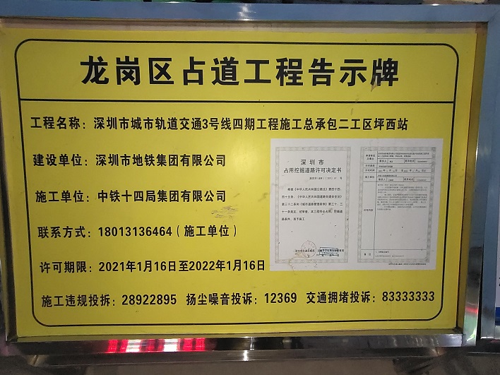 項目名稱:坪西站—深圳市城市軌道交通3號線四期工程施工坪西站建設(shè)項目