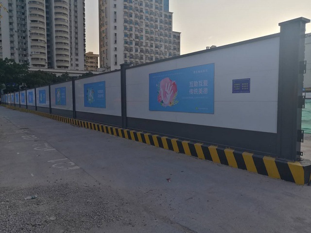 深圳旭東鋼構(gòu)技術(shù)開發(fā)有限公司鋼結(jié)構(gòu)A款圍擋產(chǎn)品是深圳工程項(xiàng)目首選的工地施工圍擋,鋼結(jié)構(gòu)圍擋A款面板以彩涂鋼板(工廠整卷流水烤漆)為原料,使用專用設(shè)備冷軋折彎一體成型為扣板結(jié)構(gòu),扣板折邊代替鋼結(jié)構(gòu)圍擋A1款面板的龍骨,并且明柱采用卡槽形式、暗柱(100*100方通)采用掛靠形式安裝,進(jìn)一步降低了材料和安裝成本,使之存儲節(jié)約空間、方便運(yùn)輸、安裝更為便捷,價(jià)格經(jīng)濟(jì)實(shí)惠。
