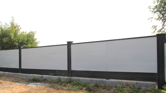鋼結(jié)構(gòu)A款圍擋表面是經(jīng)過烤漆處理,上面三塊圍擋板表面為乳白色,底部深灰色,這樣的設(shè)計(jì)能夠讓一些靠近主路或車流量相對大的路段鍍鋅扣板在陽光照射時(shí)易反光,容易讓過往行人及車輛駕駛?cè)藛T刺眼眩目,造成不安全因素。為避免此類情況和提高美觀度,特改用彩涂扣板材料。