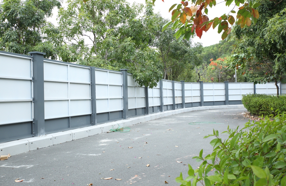 鋼圍擋上下橫梁為50*50方通,圓梁改為76鋼管,面板為鍍鋅扣板2980*470,灰色烤漆立柱高度為2.25米,加上預(yù)制基礎(chǔ)高度30cm,達(dá)到交委要求圍擋的整體高度、地面以上2.5m, 與傳統(tǒng)圍擋結(jié)構(gòu)相比,新型鋼結(jié)構(gòu)整體圍護(hù)結(jié)構(gòu)具有節(jié)約成本、縮短工期、保證質(zhì)量、社會(huì)效益和環(huán)境效益好等優(yōu)點(diǎn)。外殼集維護(hù)、噴淋、報(bào)警、防水、夜景照明等功能于一體。可多次循環(huán)利用,有效減少資源浪費(fèi),不產(chǎn)生建筑垃圾,滿足兩型社會(huì)發(fā)展的要求。